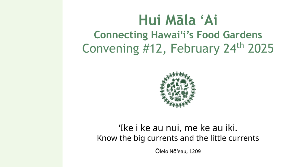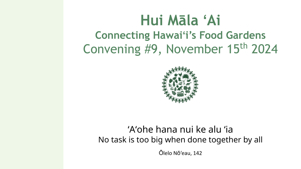 - Introduction to Hui Mala ‘Ai, and the origin of the statewide Food Garden Network Calls